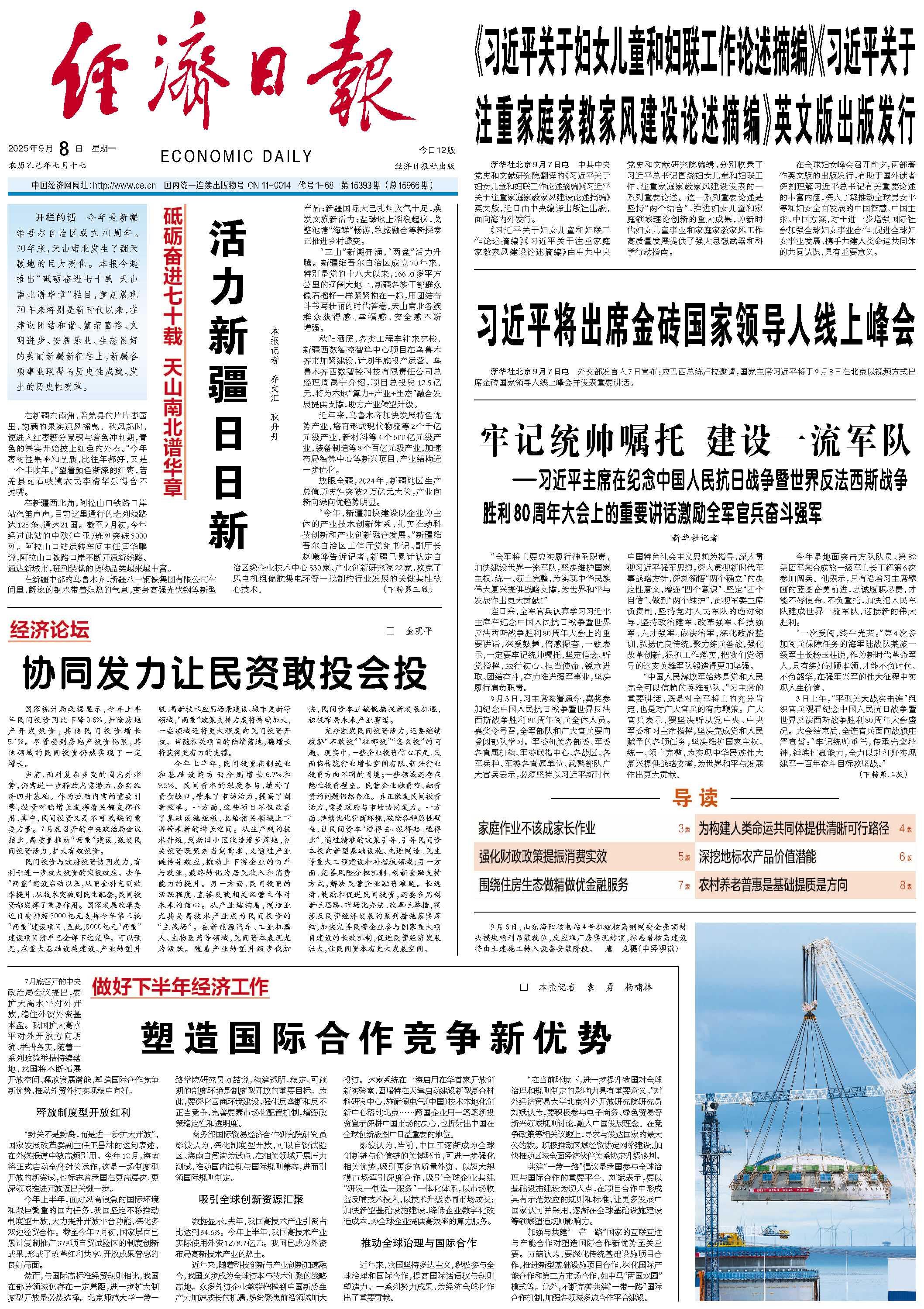 国家统计局数据显示,今年上半年民间投资同比下降0.6%,扣除房地产开发投资,其他民间投资增长5.1%。尽管受到房地产投资拖累,其他领域的民间投资仍然实现了一定增长。 当前,面对复杂多变的国内外形势,仍需进一步释放内需潜力,夯实经济回升基础。作为拉动内需的重要引擎,投资对稳增长发挥着关键支撑作用,其中,民间投资又是不可或缺的重要力量。7月底召开的中央政治局会议指出,高质量推动“两重”建设,激发民间投资活力,扩大有效投资。 民间投资与政府投资协同发力,有利于进一步放大投资的乘数效应。去年“两重”建设启动以来,从资金补充到效率提升,从技术突破到民生配套,民间投资都发挥了重要作用。国家发展改革委近日安排超3000亿元支持今年第三批“两重”建设项目,至此,8000亿元“两重”建设项目清单已全部下达完毕。可以预见,在重大基础设施建设、产业转型升级、高新技术应用场景建设、城市更新等领域,“两重”政策支持力度将持续加大,一些领域还将更大程度向民间投资开放。伴随相关项目的陆续落地,稳增长将获得更有力的支撑。 今年上半年,民间投资在制造业和基础设施方面分别增长6.7%和9.5%。民间资本的深度参与,填补了资金缺口,带来了市场活力,提高了创新效率。一方面,这些项目不仅改善了基础设施短板,也给相关领域上下游带来新的增长空间。从生产线的技术升级,到老旧小区改造逐步落地,相关投资既聚焦当期需求,又通过产业链传导效应,撬动上下游企业的订单与就业,最终转化为居民收入和消费能力的提升。另一方面,民间投资的活跃程度,直接反映相关经营主体对未来的信心。从产业结构看,制造业尤其是高技术产业成为民间投资的“主战场”。在新能源汽车、工业机器人、生物医药等领域,民间资本表现尤为活跃。随着产业转型升级步伐加快,民间资本正敏锐捕捉新发展机遇,积极布局未来产业赛道。 充分激发民间投资活力,还要继续破解“不敢投”“往哪投”“怎么投”的问题。现实中,一些企业投资信心不足,又面临传统行业增长空间有限、新兴行业投资方向不明的困境;一些领域还存在隐性投资壁垒。民营企业融资难、融资贵的问题仍然存在。真正激发民间投资活力,需要政府与市场协同发力。一方面,持续优化营商环境,破除各种隐性壁垒,让民间资本“进得去、投得起、退得出”,通过精准的政策引导,引导民间资本投向新型基础设施、先进制造、民生等重大工程建设和补短板领域;另一方面,完善风险分担机制,创新金融支持方式,解决民营企业融资难题。长远看,鼓励和促进民间投资,还要多用创新性思路、市场化办法、改革性举措,将涉及民营经济发展的系列措施落实落细,加快完善民营企业参与国家重大项目建设的长效机制,促进民营经济发展壮大,让民间资本有更大发展空间。 |